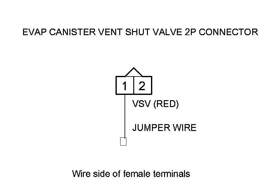 15. Connect EVAP canister vent shut valve 2P connector terminal No. 1 to body ground with a jumper wire.