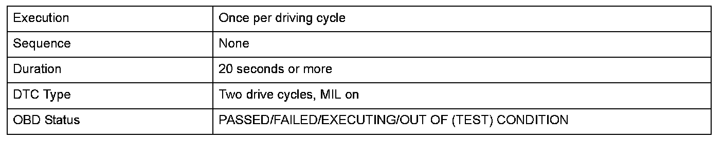Monitor Execution, Sequence, Duration, DTC Type, OBD Status