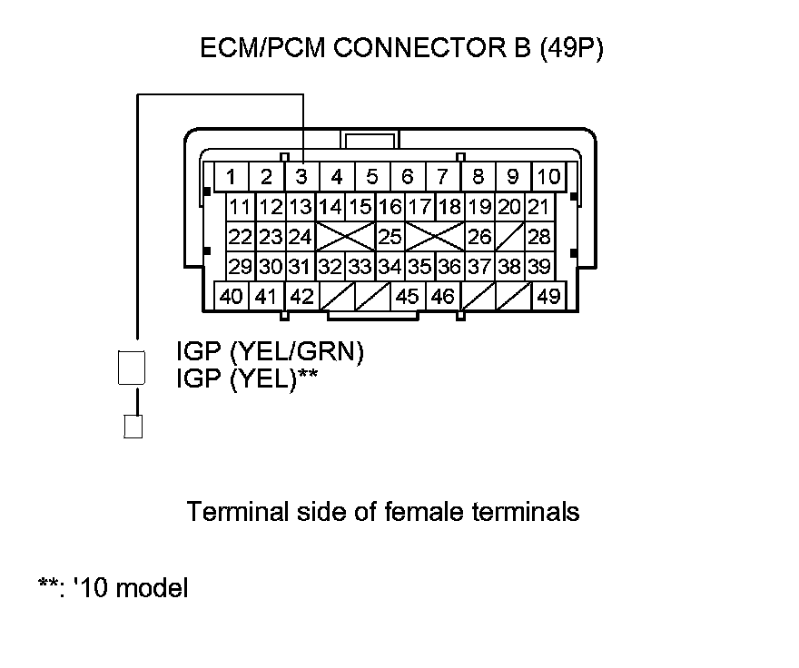 15. Measure the voltage between ECM/PCM connector terminal B3 and body ground.
