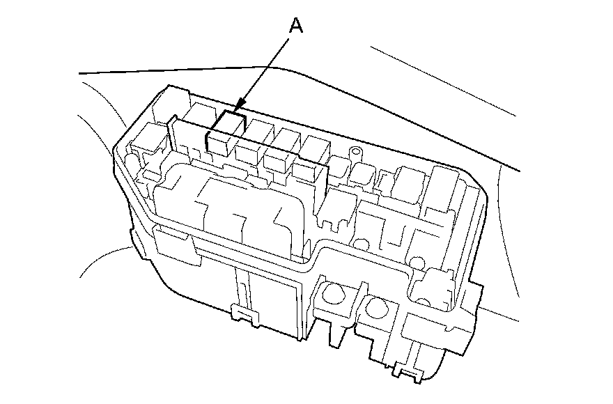 16. Remove PGM-FI main relay 1 (FI MAIN) (A) from the under-hood fuse/relay box.