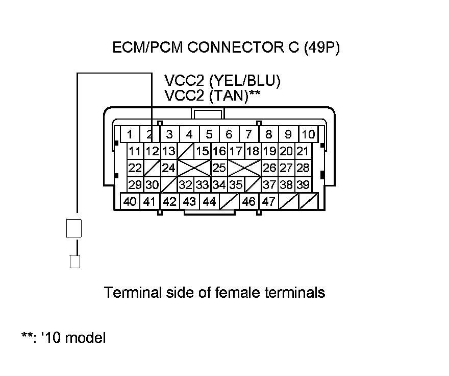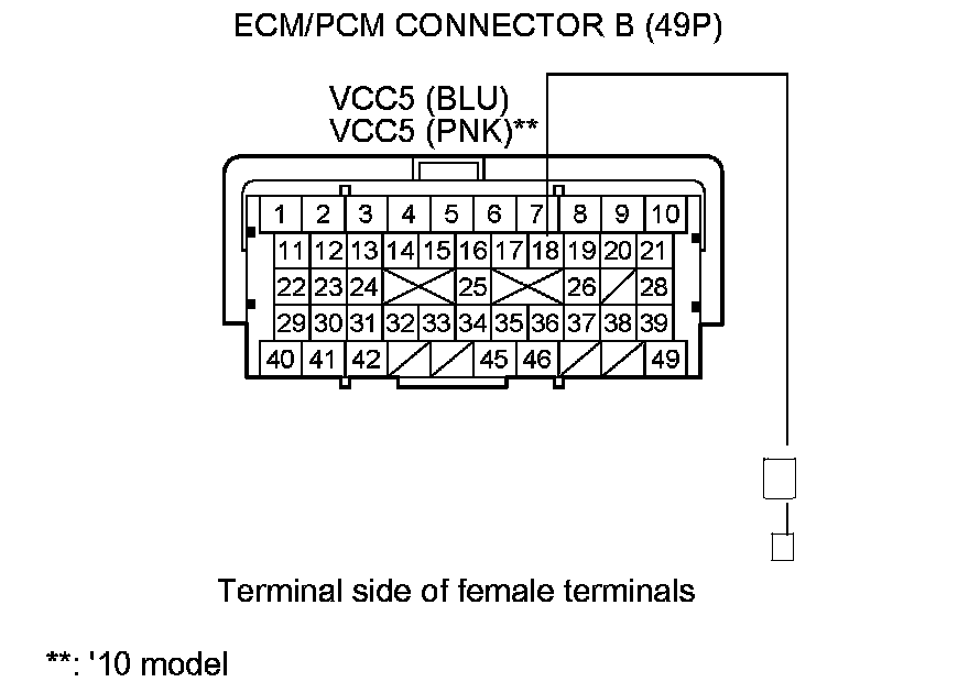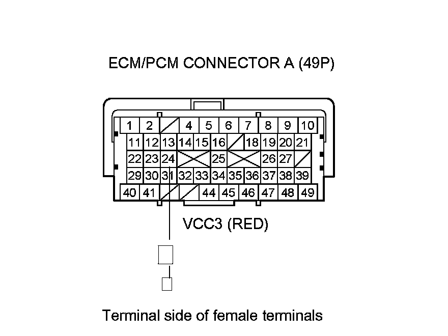 12. Disconnect ECM/PCM connectors A (49P), B (49P), and C (49P).