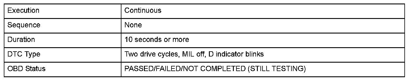 Monitor Execution, Sequence, Duration, DTC Type, OBD Status