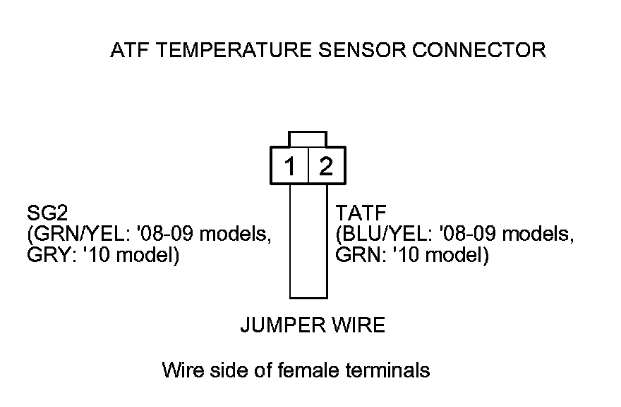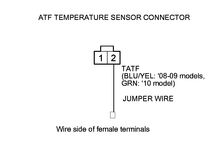 5. Connect ATF temperature sensor connector terminal No. 2 to body ground with a jumper wire.