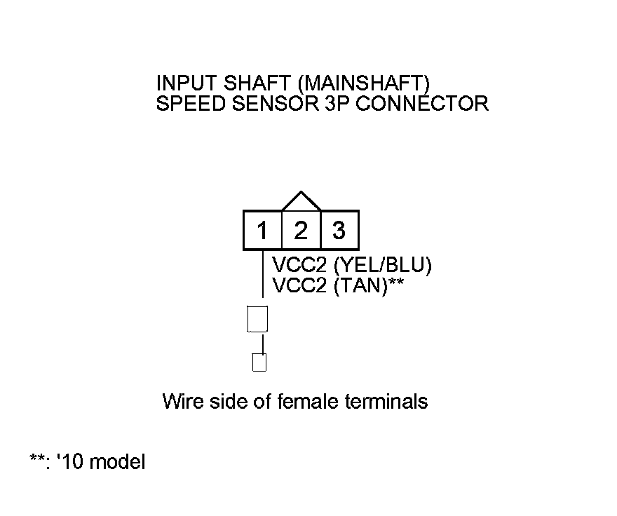 9. Measure the voltage between input shaft (mainshaft) speed sensor 3P connector terminals No. 1 and No. 3.