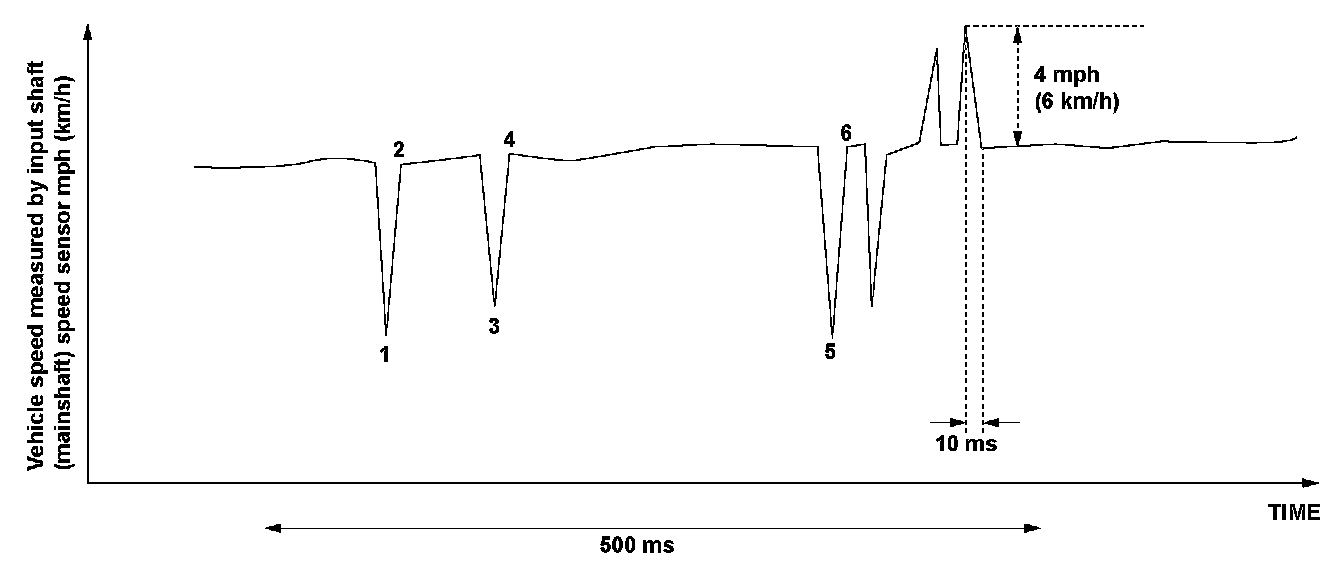 The fluctuation of the vehicle speed measured by the input shaft (mainshaft) speed sensor in 10 milliseconds is 4 mph (6 km/h) or more, and it fluctuates at least six times within 500 milliseconds.