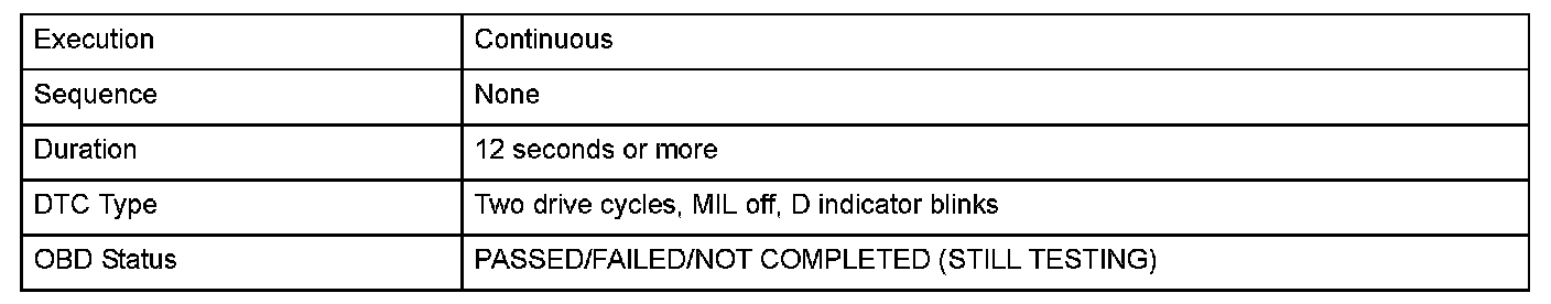 Monitor Execution, Sequence, Duration, DTC Type, OBD Status