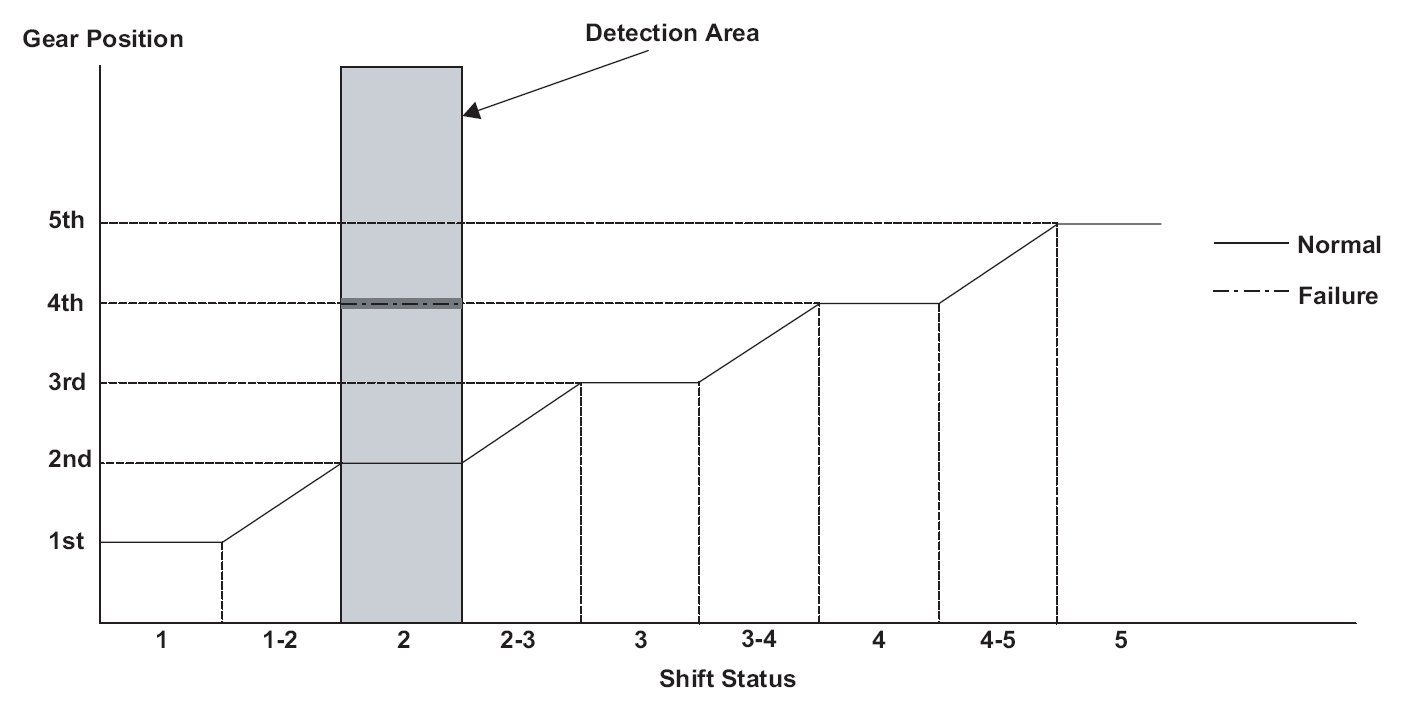 The transmission is held in 4th gear against the 2nd gear command for at least 1.5 seconds.