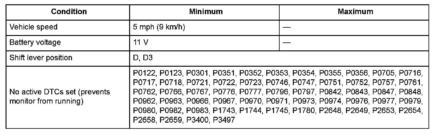 Monitor Execution, Sequence, Duration, DTC Type, OBD Status