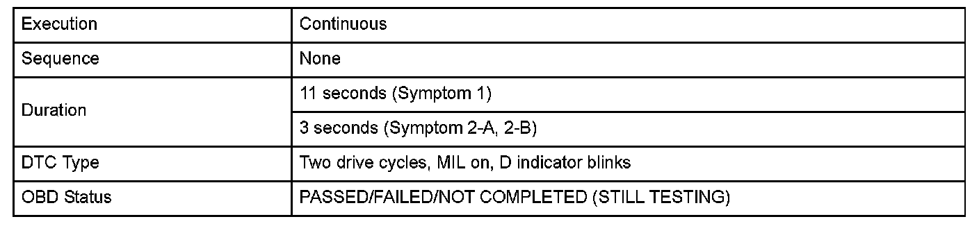 Monitor Execution, Sequence, Duration, DTC Type, OBD Status