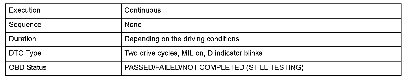 Monitor Execution, Sequence, Duration, DTC Type, OBD Status