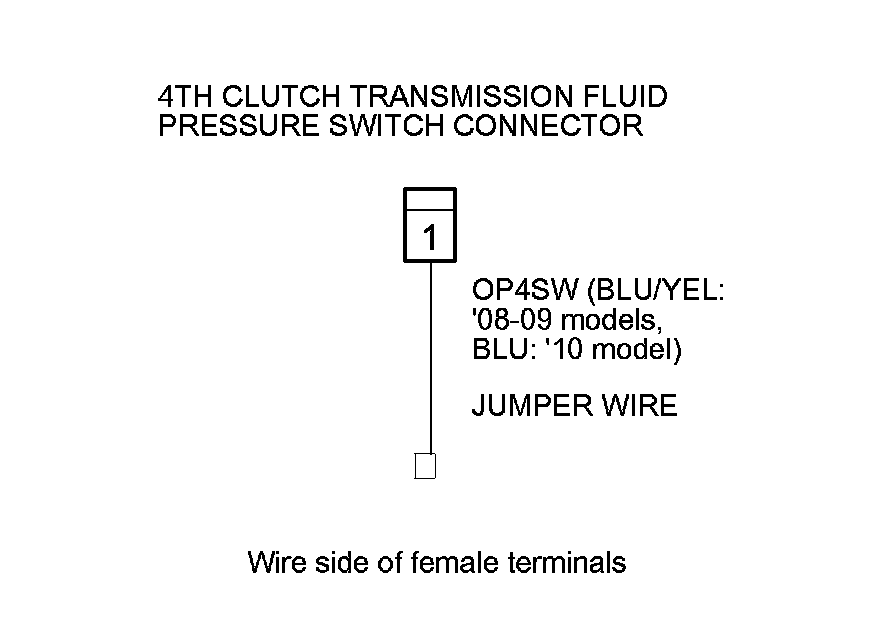 10. Connect a jumper wire between the 4th clutch transmission fluid pressure switch connector terminal and body ground.