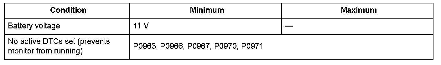 Conditions for setting the DTC