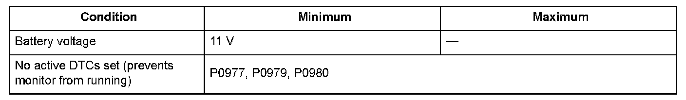 Conditions for setting the DTC