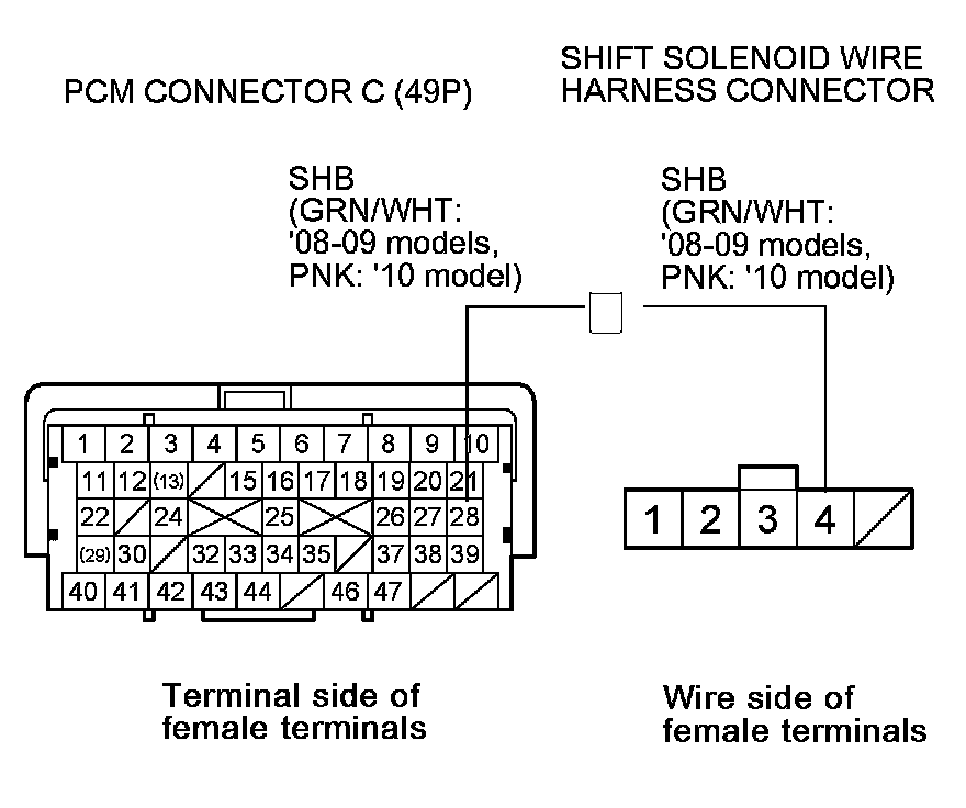 Check for poor connections or loose terminals between shift solenoid valve B and the PCM. If the PCM was updated, substitute a known-good PCM Initial Inspection and Diagnostic Overview, then go to step 27. If the PCM was substituted, go to step 1.
