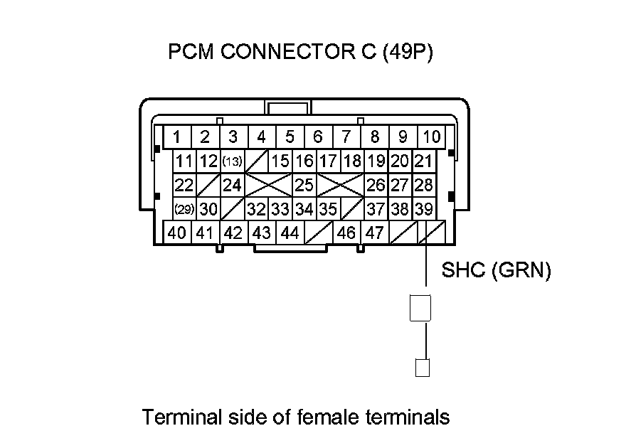 12. Measure the resistance between PCM connector terminal C39 body ground.