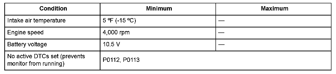 Conditions for setting the DTC