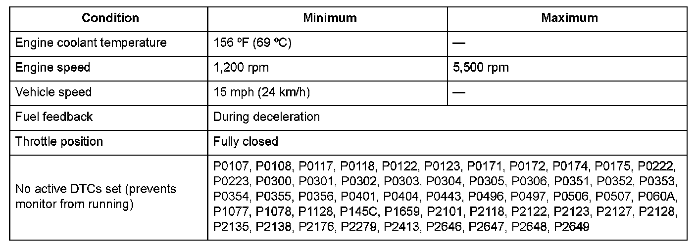 Conditions for setting the DTC