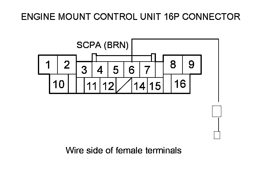 Repair open in the wire between engine mount control unit 16P connector terminal No. 6 and PCM connector terminal A14, then go to step 16.