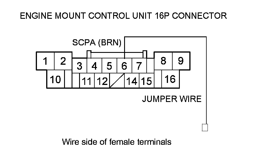 14. Connect engine mount control unit 16P connector terminal No. 6 to body ground with a jumper wire.