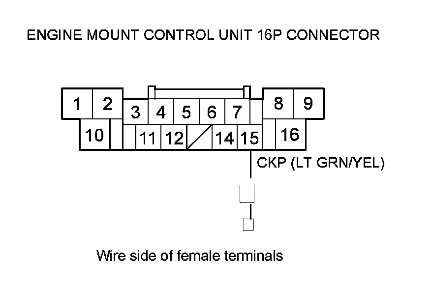 6. Check for poor connections or loose terminals at the engine mount control unit 16P connector and PCM connector A (49P).