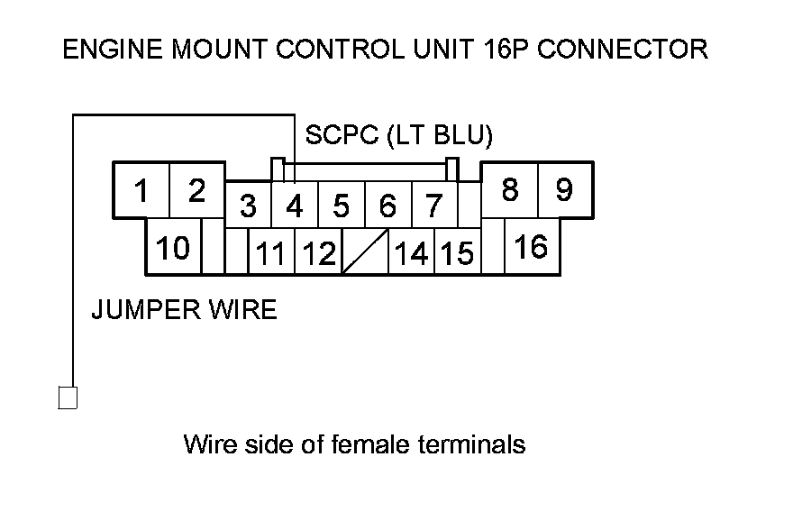 14. Connect engine mount control unit 16P connector terminal No. 4 to body ground with a jumper wire.
