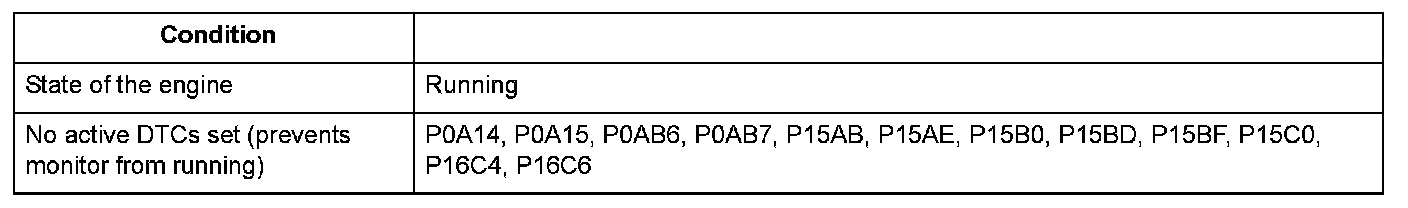 Conditions for setting the DTC