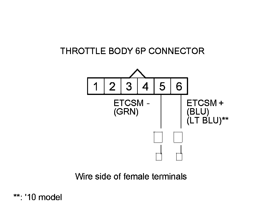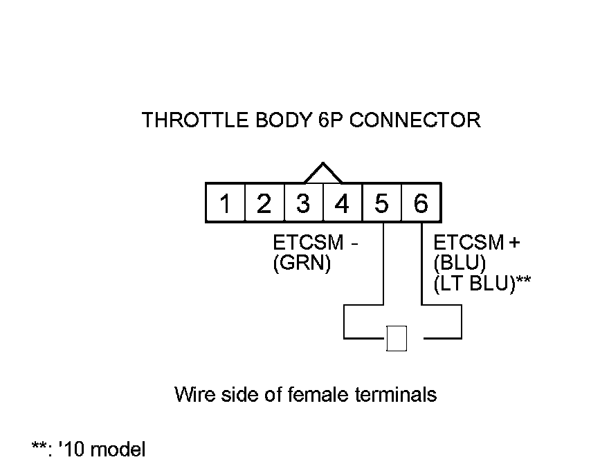 11. Check for continuity between throttle body 6P connector terminals No. 5 and No. 6.