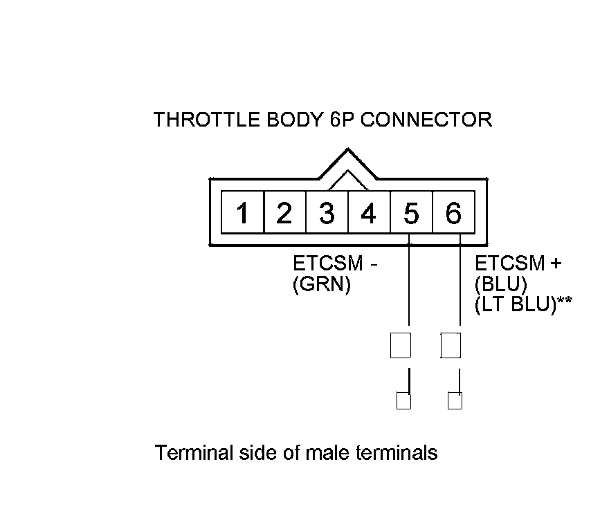 12. Check for continuity between body ground and throttle body 6P connector terminals No. 5 and No. 6 individually.