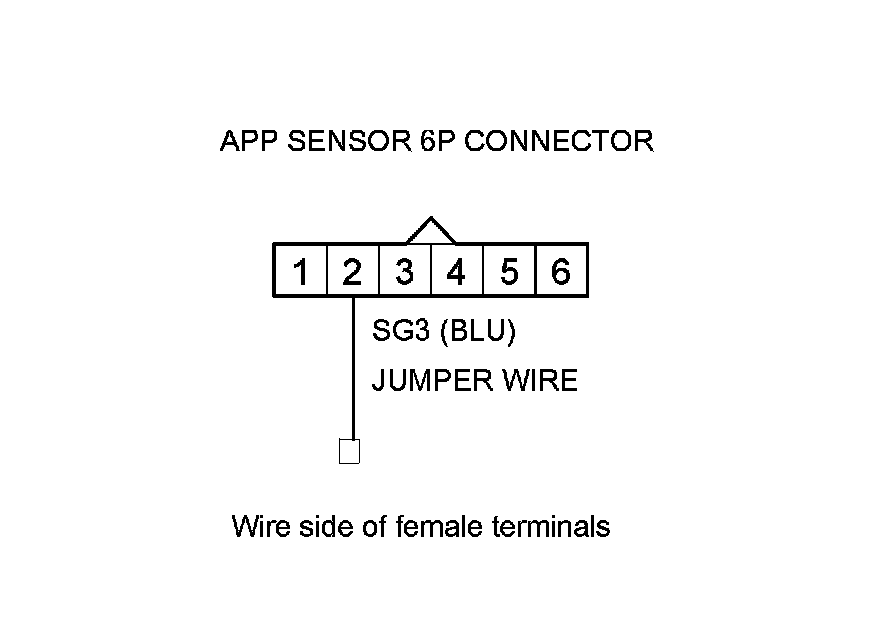10. Connect APP sensor 6P connector terminal No. 2 to body ground with a jumper wire.