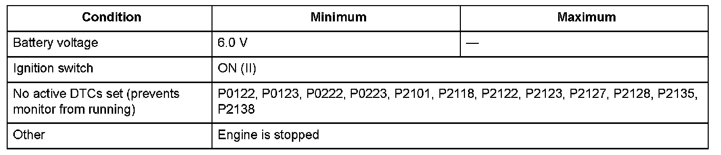 - The registration of the throttle valve fully closed position is not completed within a predetermined time after the ignition switch is turned to ON (II).