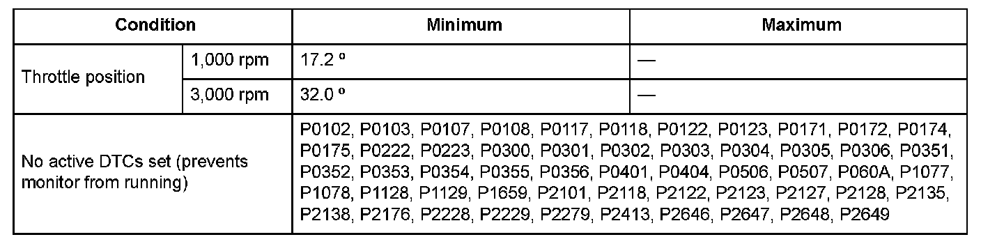 2. Drive the vehicle under Enable Conditions (see "Throttle position") for at least 2.5 seconds.