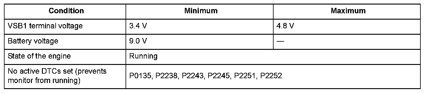 Conditions for setting the DTC