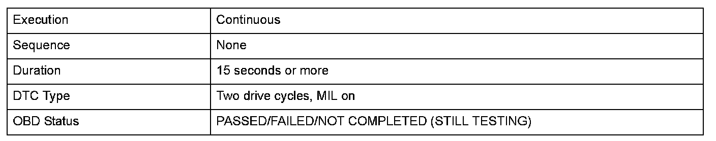 Monitor Execution, Sequence, Duration, DTC Type, OBD Status