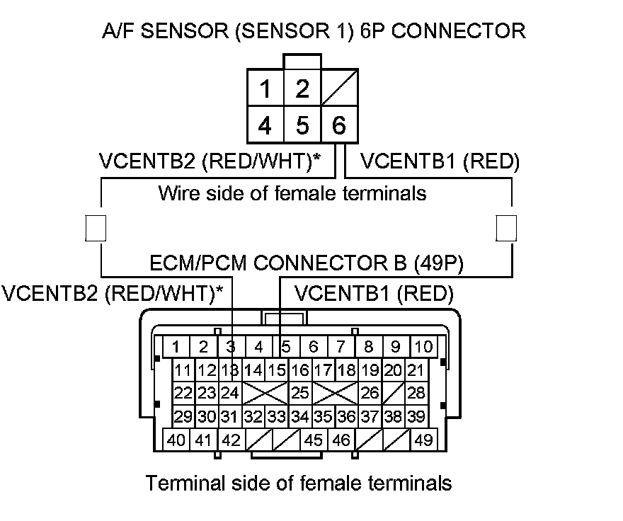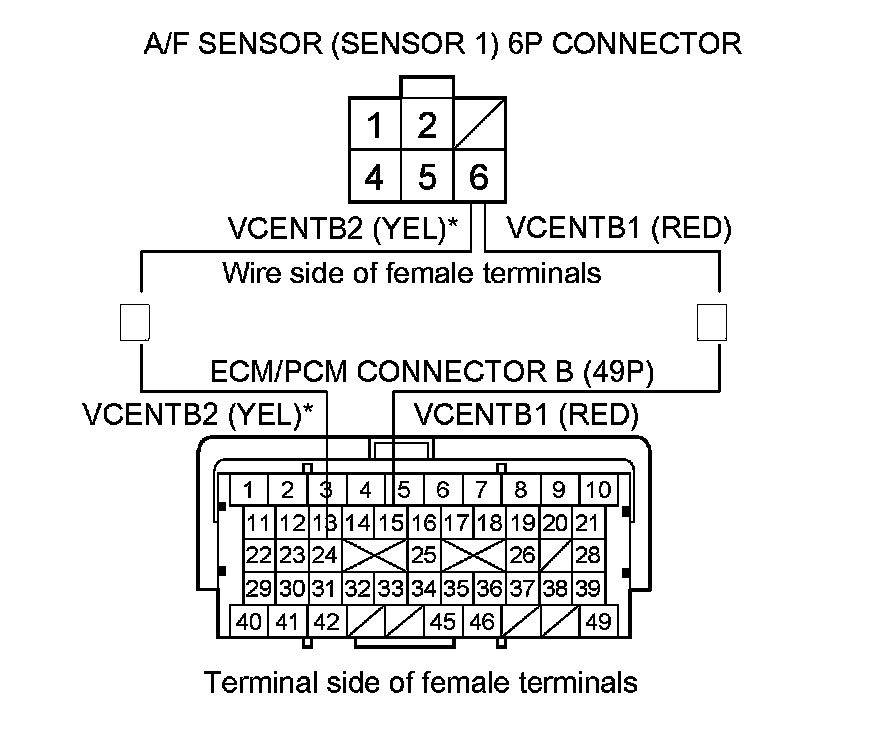 Repair open in the wire between the ECM/PCM (B15 (B24)*) and the A/F sensor (Sensor 1), then go to step 14.