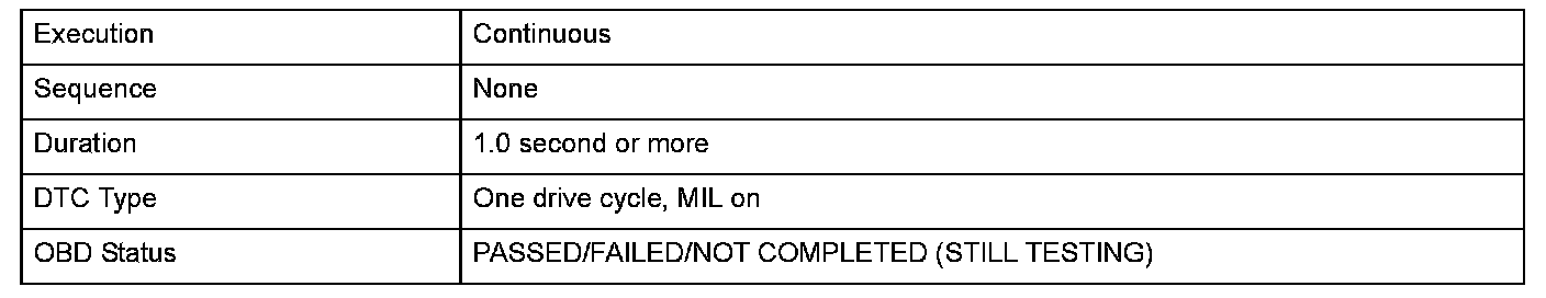 Monitor Execution, Sequence, Duration, DTC Type, OBD Status