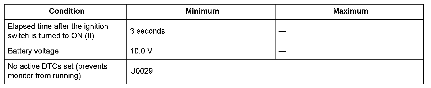 - The ECM/PCM does not receive any signals via the F-CAN lines for at least 1 second.