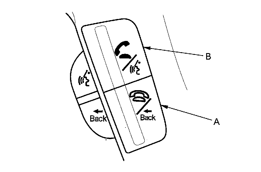 - HFL BACK button (B): Use this button on the steering wheel to end a call or return to a previous prompt in the HFL menu. Pressing the button twice or holding it down returns you to the HFL main menu.