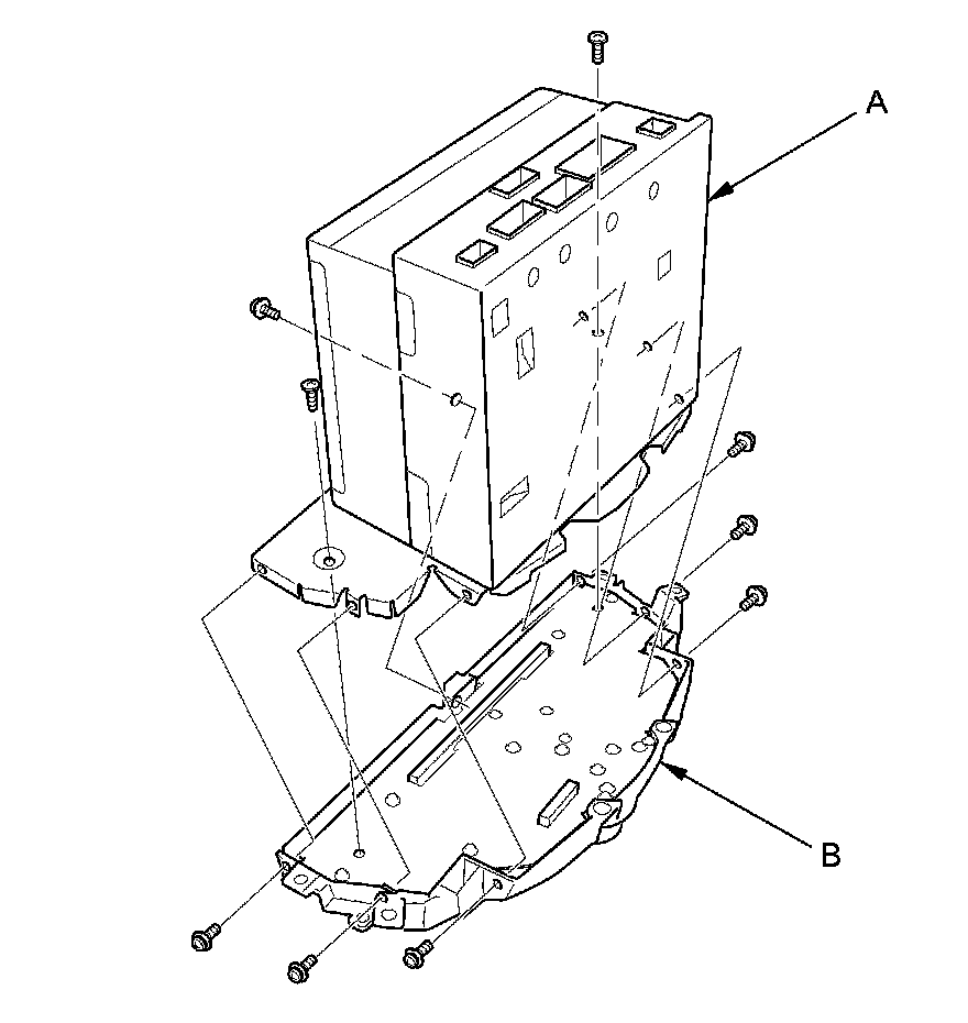 2. Remove the mounting screws and the audio unit (A) from the audio switch panel (B).