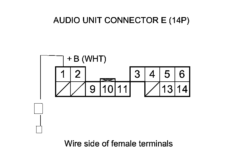 8. Measure the voltage between audio unit connector E (14P) terminal No. 1 and body ground.