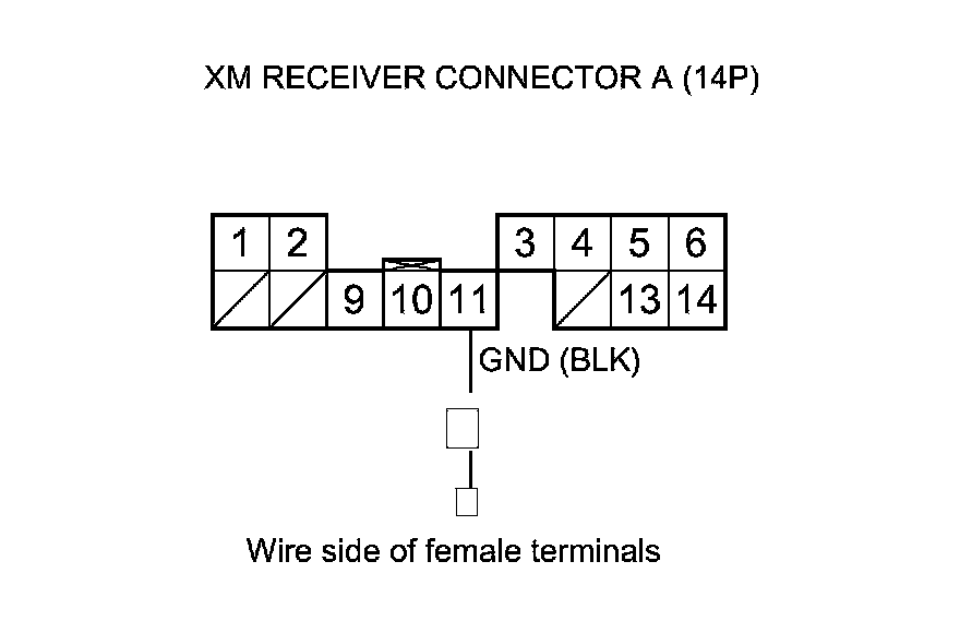 10. Measure the voltage between XM receiver connector A (14P) terminal No. 11 and body ground.