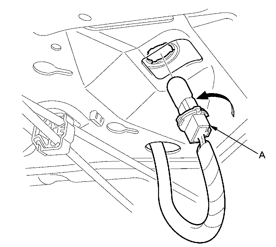 2. From the trunk compartment, turn the high mount brake light socket (A) 45 ° counterclockwise to remove the socket. 4-door is shown; 2-door is similar.