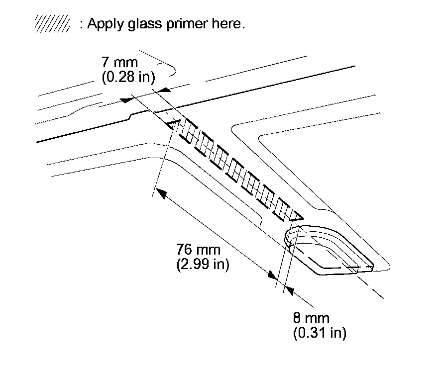 5. Before installing the rearview mirror harness cover base, apply glass primer to the area where the harness cover base will be applied to the inside face of the windshield. Let the primer dry at least 10 minutes, then attach the mirror to the windshield within 12 hours.