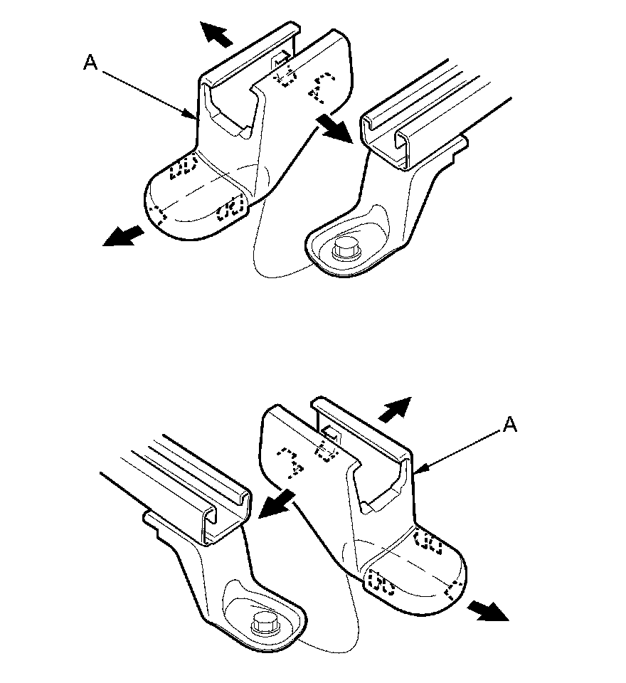 5. Remove the seat track end covers (A) from the back of both seat tracks.