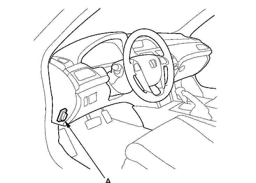 1. If the system indicators stay on, connect the HDS to the data link connector (DLC) (A) located under the driver's side of the dashboard.