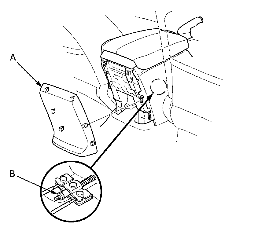 2. Pull out the center console rear trim (A) Center Console Rear Trim Removal/Installation.