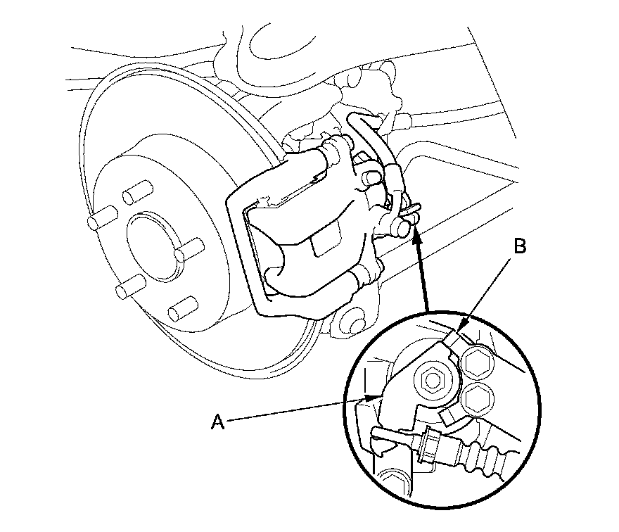 6. Make sure the lever (A) on the rear brake caliper contacts the arm (B).