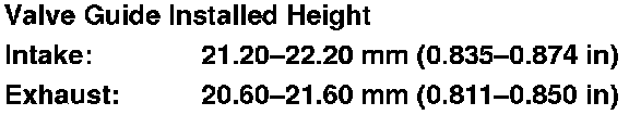 9. Apply a thin coat of new engine oil to the outside of the new valve guide. Install the guide from the camshaft side of the head; use the valve guide driver, 5.35 x 9.7 mm to drive the guide to the specified installed height (A) of the guide (B). If you have all 12 guides to do, you may have to reheat the head.