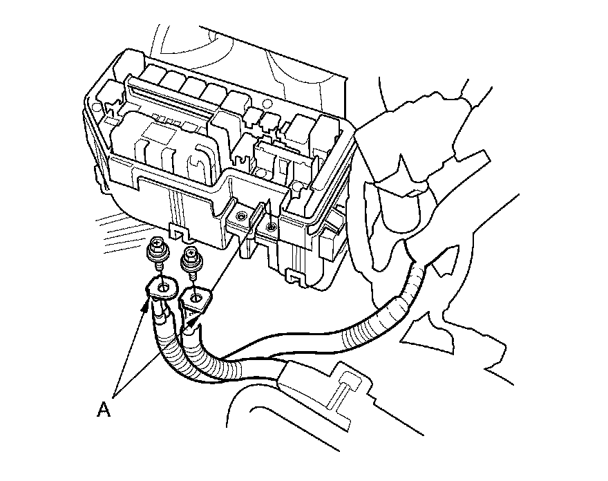 11. Disconnect the battery cables (A) from the under-hood fuse/relay box.
