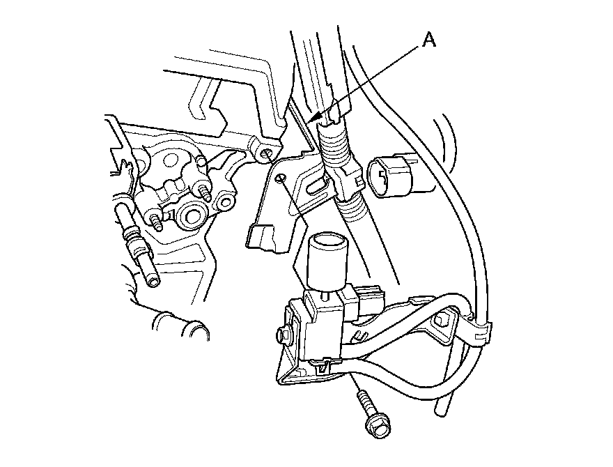 46. Remove the harness clamp bracket (A) from the rear cylinder head; use the bracket bolt hole to attach the 2008 V6 attachment arm (SIL02C000033).