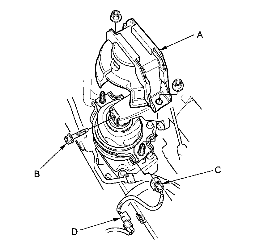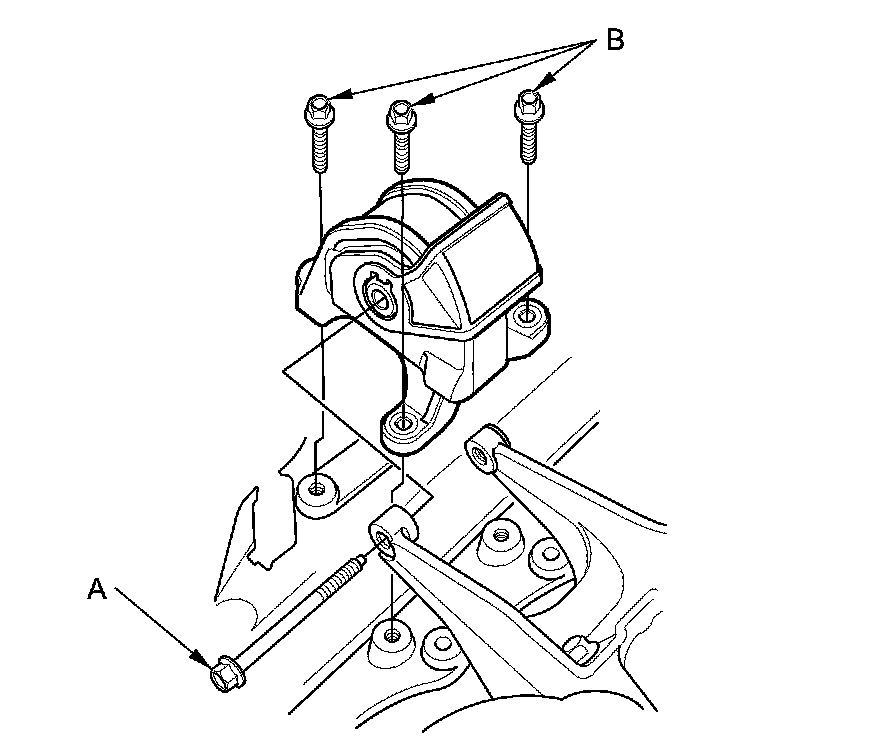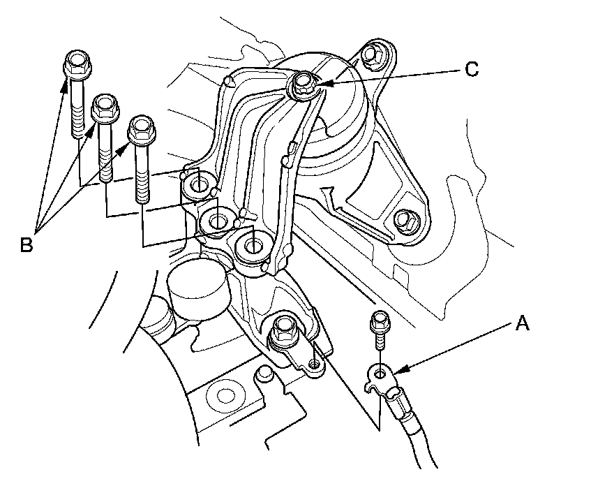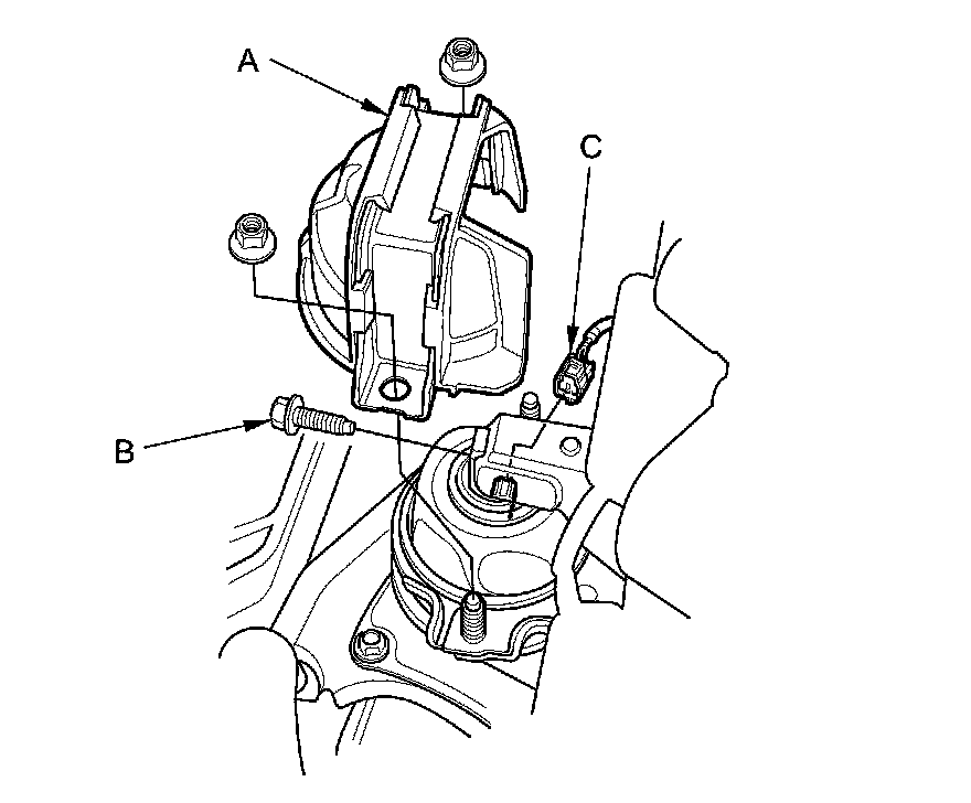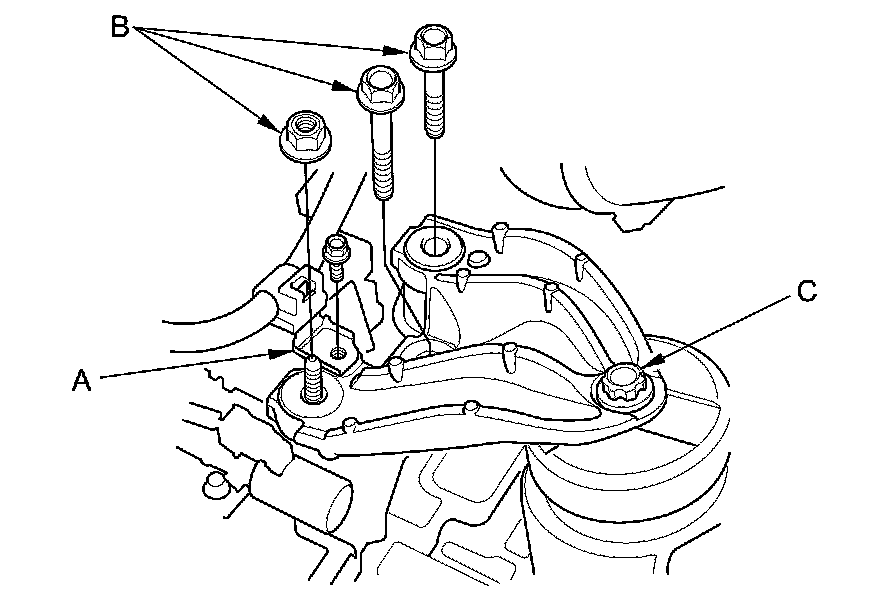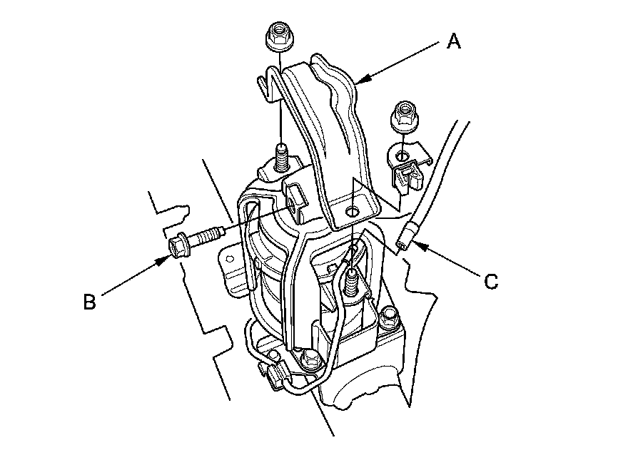 NOTE: Do not remove the TORX bolt (C) from the upper transmission mount. If the TORX bolt is removed, the upper transmission mount must be replaced as an assembly.